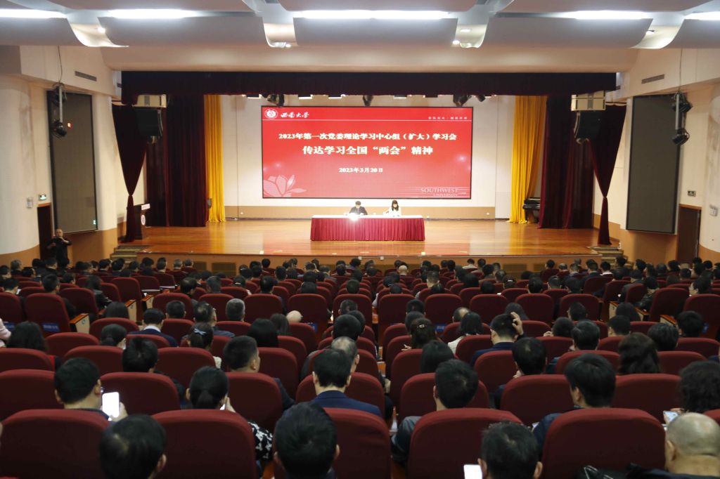 3月20日,学校在演奏厅召开2023年第一次党委理论学习中心组(扩大)学习会,传达学习全国两会精神,安排部署学校贯彻落实意见。校领导、党委常委、党委委员、纪委委员、副处级以上领导干部以及各民主党派基层组织和统战团体负责人参加会议。学校党委书记李旭锋主持会议。