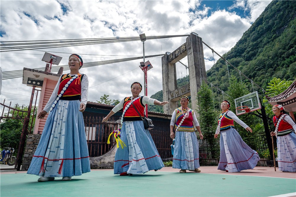 云南省怒江州福贡县石月亮乡拉玛底村村民自发组成的“奋进合唱团”在村委会排练节目(2022年9月14日摄)。2020年,怒江州26.96万贫困人口全部脱贫,249个贫困村全部出列,4个贫困县(市)全部摘帽。新华社记者江文耀摄