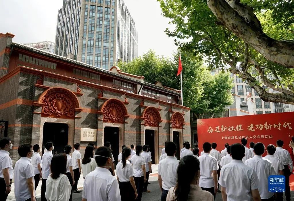 上海市新党员代表入党宣誓活动在中共一大会址前举行(2022年7月1日摄)。新华社记者刘颖摄