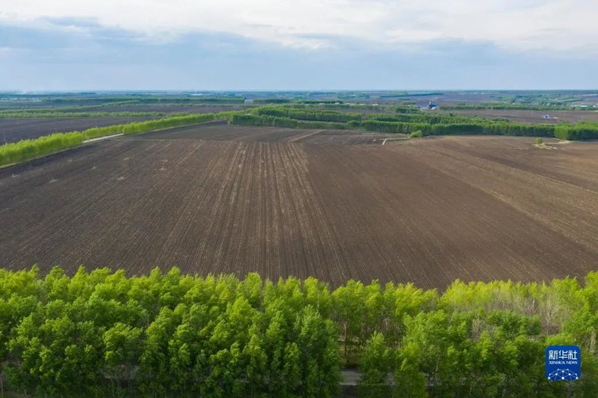 黑龙江省海伦市前进镇光荣村已完成播种的黑土耕地(2022年5月23日摄,无人机照片)。新华社记者 谢剑飞 摄