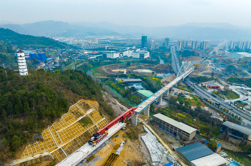 重庆市南川区西城街道新桥社区,渝湘高铁重庆至黔江段施工现场,一派忙碌的建设场面。胡波摄(人民视觉)