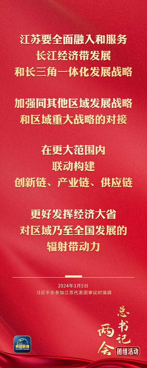 在认真听取大家发言后,习近平作了发言。他首先表示赞成政府工作报告,充分肯定江苏经济社会发展取得的新进展新成效,希望江苏坚定信心、鼓足干劲、勇挑大梁,为全国大局作出更大贡献。