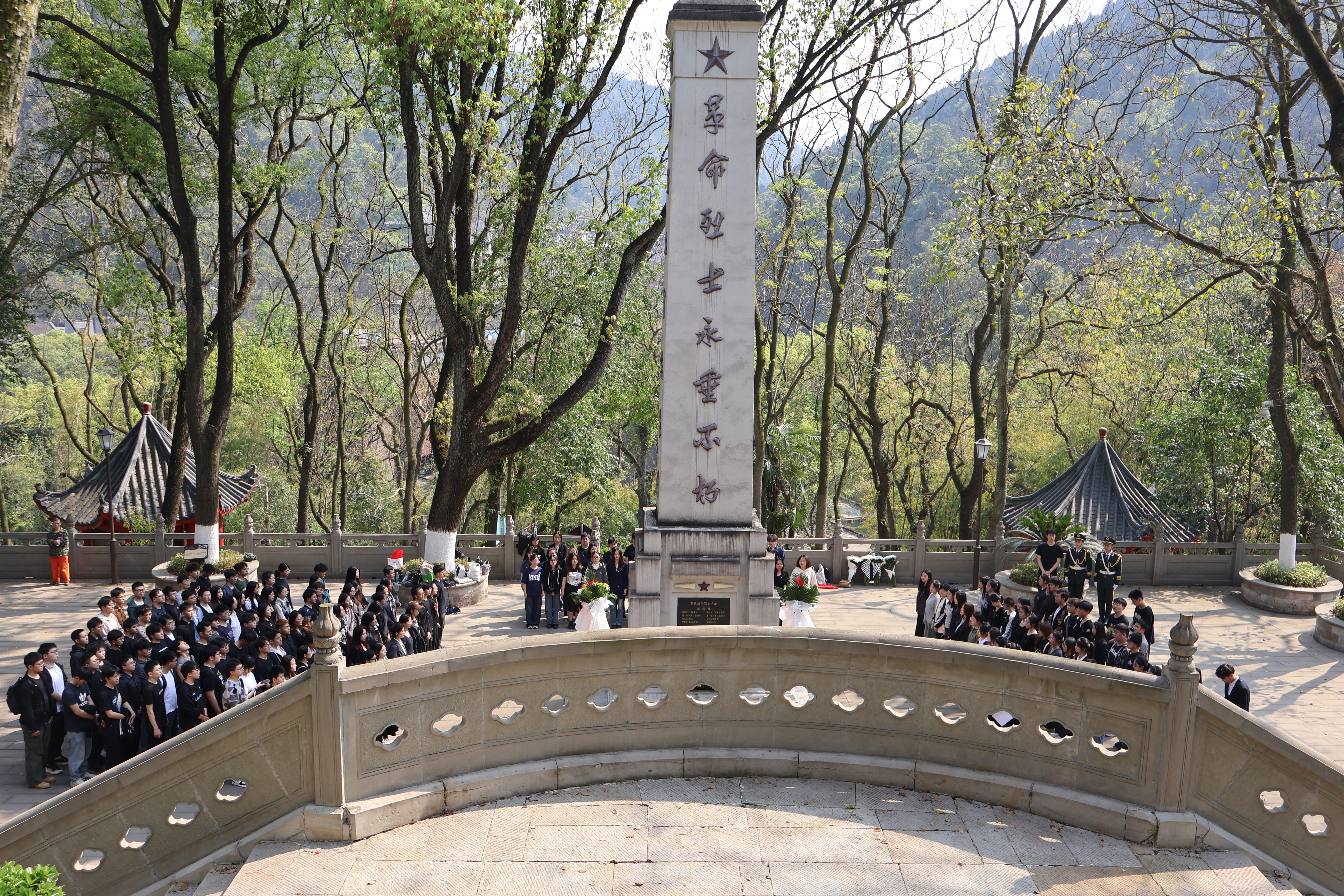 “你们的牺牲,不是终点,而是我们奋斗的起点。”清明前夕,重庆大学启动“行走的红岩思政课堂”,组织近千名师生赴重庆红岩思政课外基地,开展感悟红色文化、传承革命精神、塑造时代新人系列活动。在巴南区南泉革命烈士陵园,重庆大学外国语学院组织190名团委学生会成员、学生党员代表、少数民族学生代表等,通过敬献花篮、宣讲红色故事等方式,深切缅怀革命先烈,深入学习红岩精神。