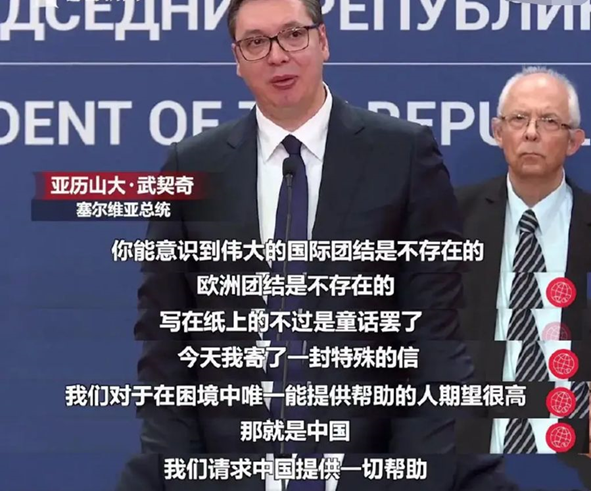 当地时间2020年3月15日,塞尔维亚总统武契奇在宣布塞尔维亚全国进入紧急状态时,含泪向中国求助,中国不负所托,用重达十几吨的防疫物资诠释了什么是“同舟共济”,什么是中国担当。