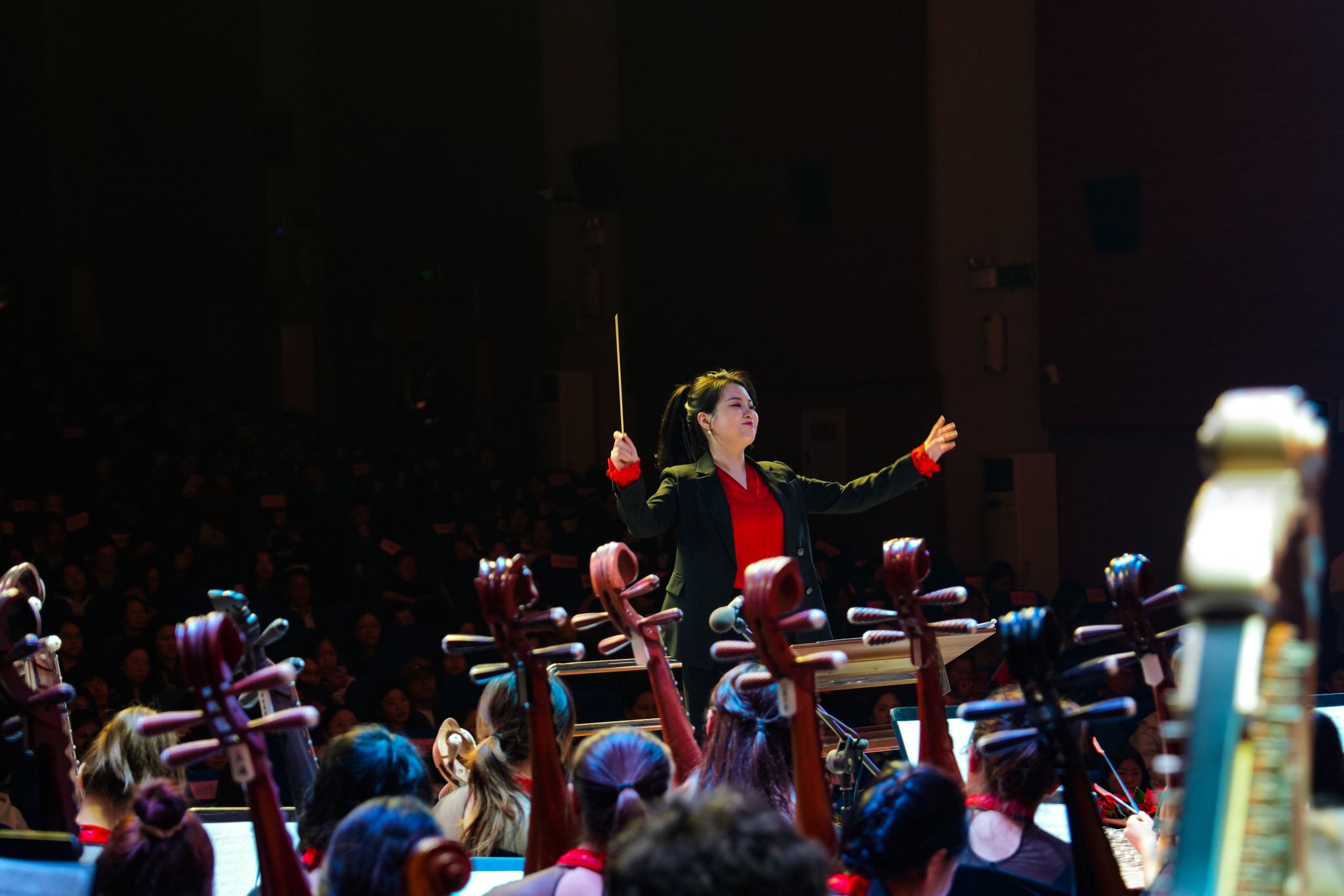 指挥颜芬以一首充满力量与气势的《弓舞·小刀会》拉开第一篇章的帷幕,婉转起伏的《红高粱》、深情演唱的《祖国之恋》、似万马奔腾于沙场的二胡齐奏《战马奔腾》,讴歌着中华儿女的智慧与汗水和昂扬向上的砥砺姿态。