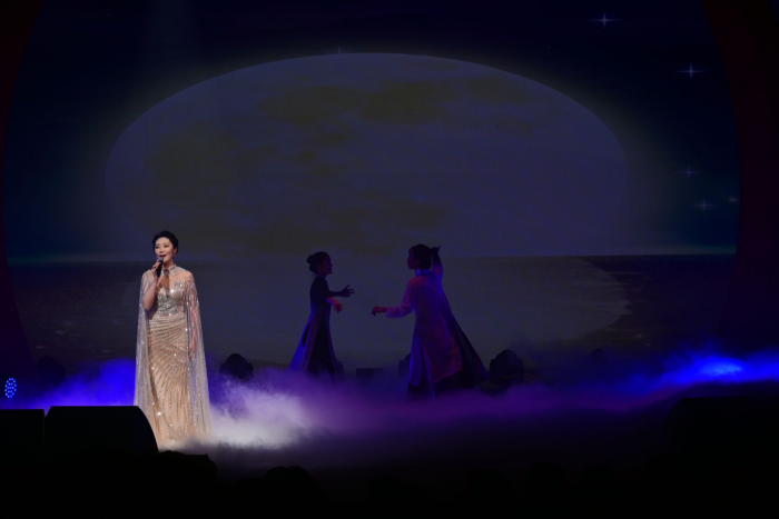 第二篇章“雅韵流芳”中,诗词、音乐、舞蹈的和谐交融,映衬出中华文化的源远流长、博大精深。一曲《但愿人长久》女声独唱以一轮明月点亮人们内心深处的灯盏。由新闻传媒学院和音乐学院共同带来的情景朗诵《将进酒》豪情万丈,带领大家在时空穿梭中坚定对理想的追求。文学院和附属中学带来的京剧联唱《贵妃醉酒》《梨花颂》在念唱之间尽展国粹魅力,体育学院的武术表演《中国功夫》在一招一式中尽显中国气派。