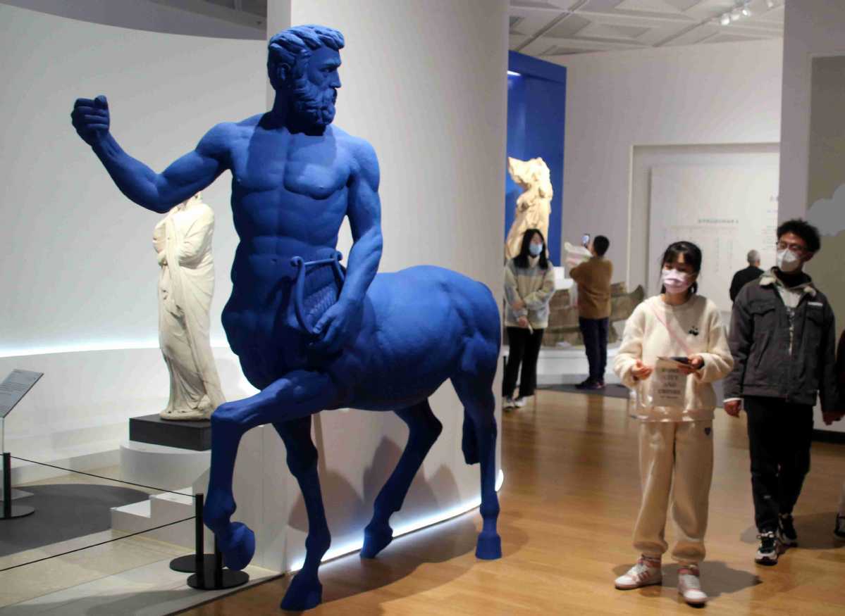 Visitors view ancient Greek artifacts at an exhibition at Suzhou Museum in Jiangsu province on Jan 10. The Ancient Greeks: athletes, warriors and heroes exhibition displayed 177 ancient Greek artifacts from the British Museum's collection. WANG JIANKANG/FOR CHINA DAILY