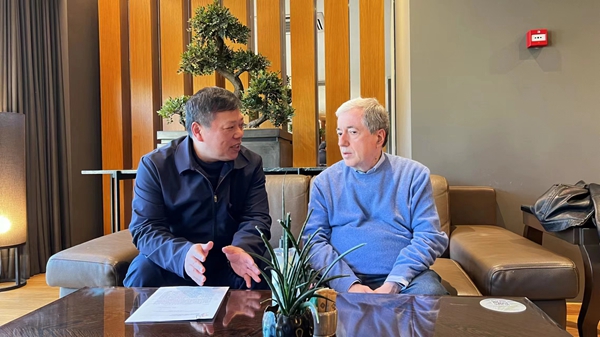 中希文明互鉴中心成立当天,betway88西汉姆联校长张卫国(左)和维尔维达基斯讨论未来合作事宜。