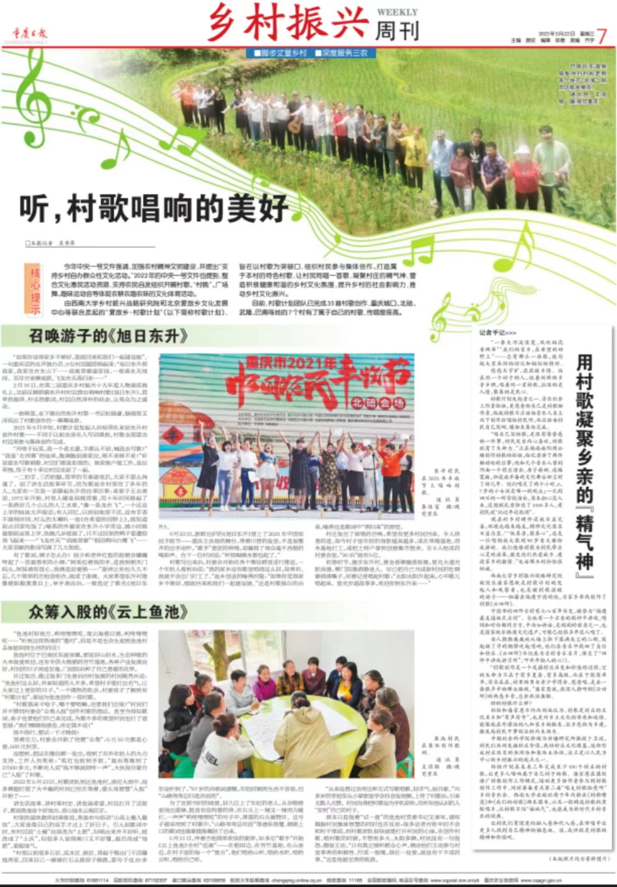 【重庆日报】2月22日,《重庆日报》整版报到学校推动的村歌