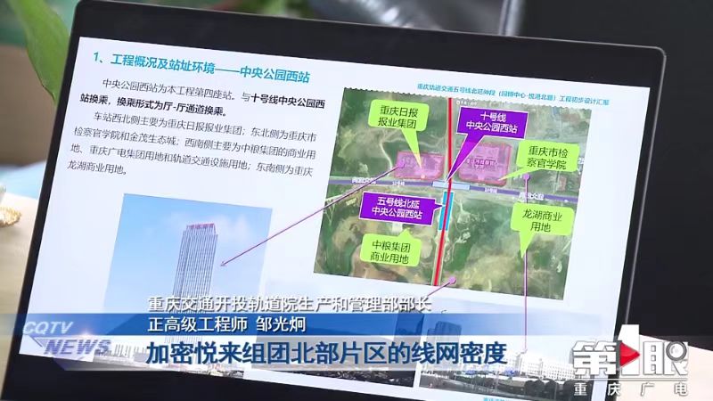 记者找到重庆轨道院,工程师邹光炯是5号线北延伸段工程的设计负责人之一。邹光炯回忆,线路从2017年筹备设计,2019年开工,实际建设时间仅用了3年多。它修建的时候周边基本上是属于农田。但是这条线路它的主要目的是加密悦来组团北部片区的一个线网密度。