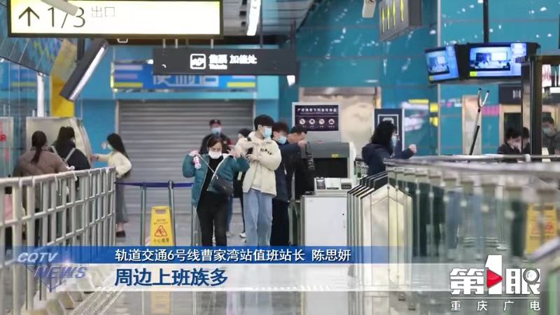 轨道交通6号线曹家湾站值班站长陈思妍透露,全天日均进站客流达到5万人次,周边上班族多。