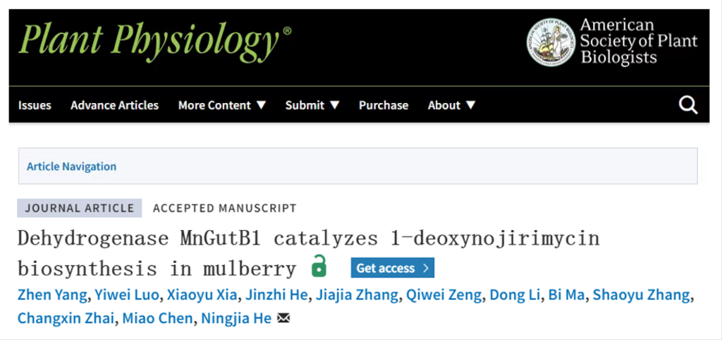 2月4日,植物领域国际顶级期刊Plant Physiology在线发表了家蚕基因组生物学国家重点实验室桑树研究团队题为“Dehydrogenase MnGutB1 catalyzes 1-deoxynojirimycin biosynthesis in mulberry”的研究成果。