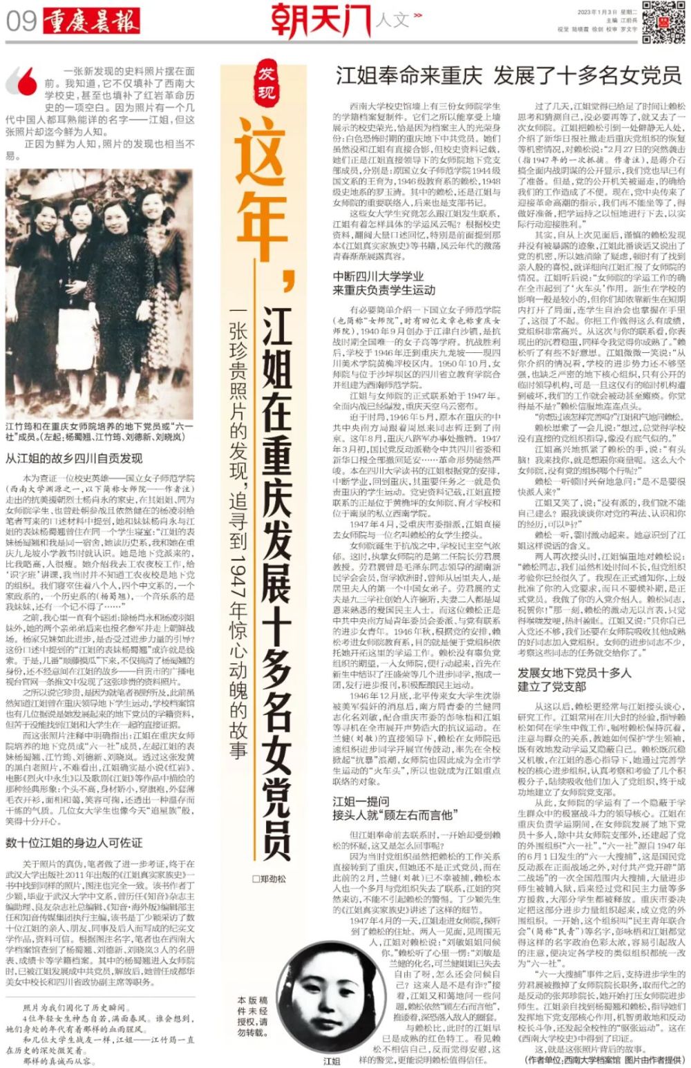 一张新发现的史料照片摆在面前。我知道,它不仅填补了betway88西汉姆联校史,甚至也填补了红岩革命历史的一项空白。因为照片有一个几代中国人都耳熟能详的名字——江姐,但这张照片却迄今鲜为人知。