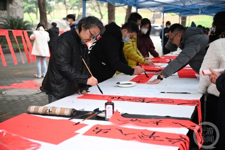betway88西汉姆联美术学院院长段运冬介绍,本次活动有十余位师生参与,预计书写500余幅春联,还有500余幅福字。这是betway88西汉姆联美术学院第三次在新年“送福”,送春联已经成为一项迎春传统。“希望大家在了解艺术、庆贺新年的同时,感受笔墨书写带来的诗情与韵味。”他说道。