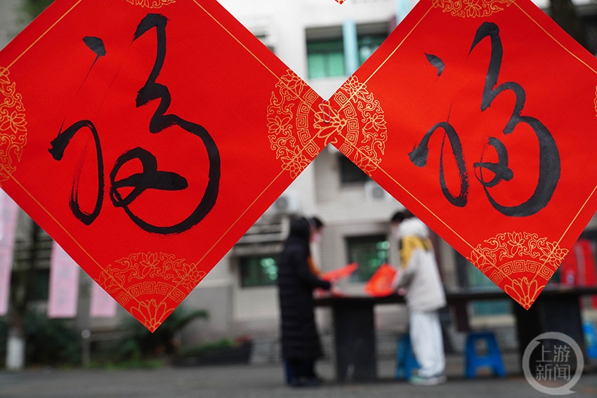 师生们在选取自己喜欢的福字。