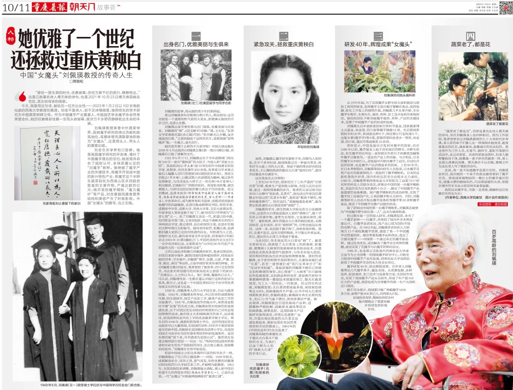 “蔬菜老了都是花”,同样是著名女诗人傅天琳的诗句,用在刘佩瑛身上也同样贴切。因为工作原因,笔者曾参加过刘佩瑛教授的九十大寿和百岁寿典,老人家的弟子们像儿女一样围绕在她身旁,她身着喜庆的红衣,满面春风,就像盛开的花朵似的。我还曾作为工作人员,在春节、教师节、重阳节等慰问活动中,去过刘老家。刘老的家陈设简朴,但老人精神矍铄而干净,就像她一辈子研究的蔬菜一样,看上去那么清爽而淡雅。傅天琳并不认识她,幂幂之中为这位老人写了精彩的诗句。