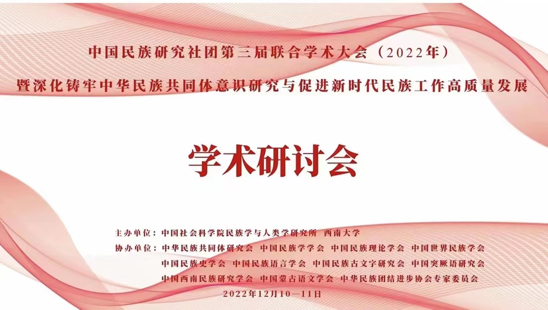 为更好地学习贯彻党的二十大精神,落实中央民族工作会议精神。近日,中国民族研究社团第三届联合学术大会暨深化铸牢中华民族共同体意识研究与促进新时代民族工作高质量发展学术研讨会召开。