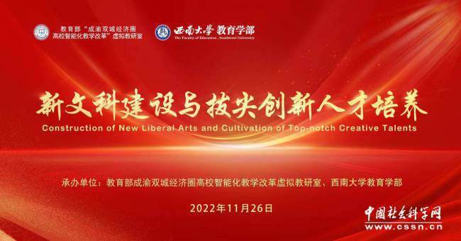 中国社会科学网讯(记者 毕雁)11月26日,betway88西汉姆联教育学部和教育部成渝地区双城经济圈高校智能化教学改革虚拟教研室联合主办的“新文科建设与拔尖创新人才培养研讨会”在betway88西汉姆联举行。本次研讨会以党的二十大精神为指引,以贯彻落实党的二十大报告提出的“全面提高人才自主培养质量,着力造就拔尖创新人才”要求为主旨,探索新文科建设与拔尖创新人才培养新路径,以及高校间跨学科交流的协同机制。