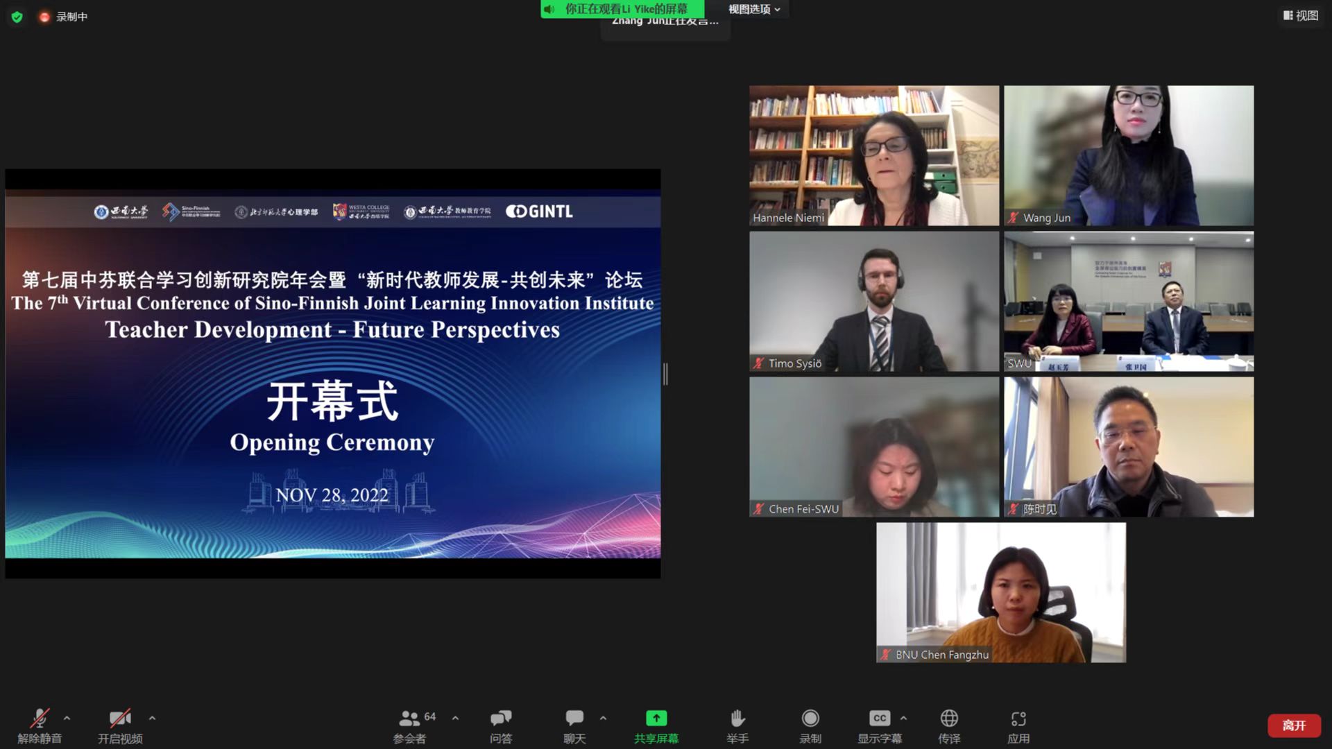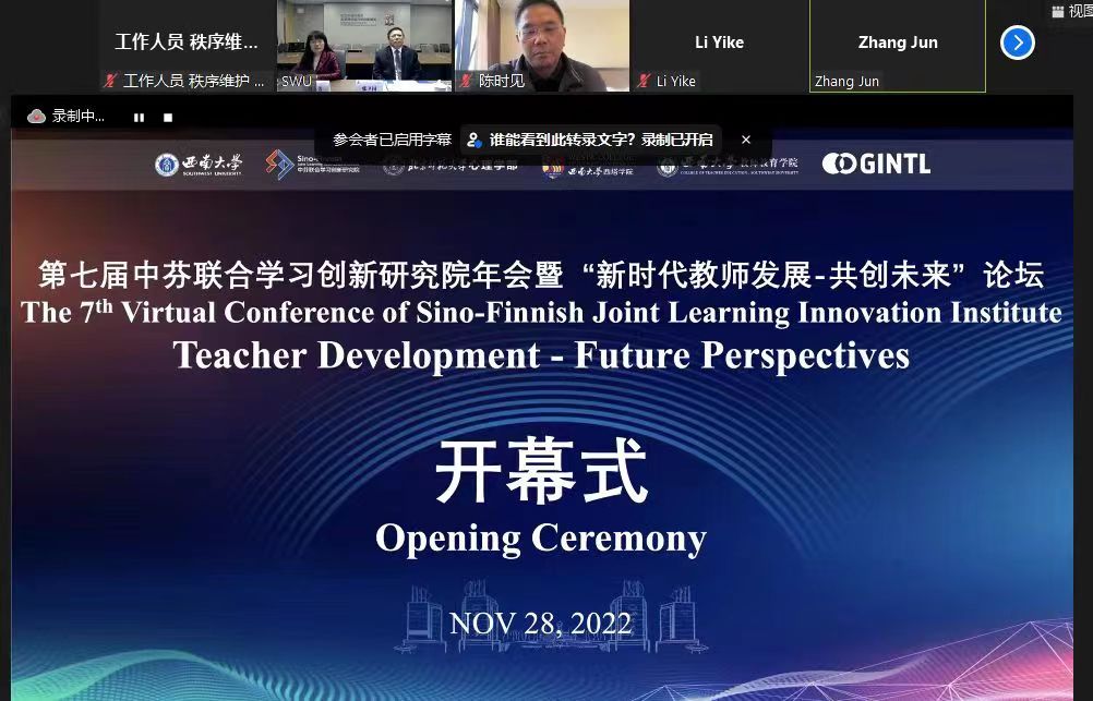 11月28日,第七届中芬联合学习创新研究院年会暨“新时代教师发展——共创未来 ”论坛在线上召开。围绕“新时代教师发展——共创未来”这一主题,来自中芬两国30所高校和研究机构的近200位学者为新时代科教事业的发展与创新碰撞思想、交流互鉴。