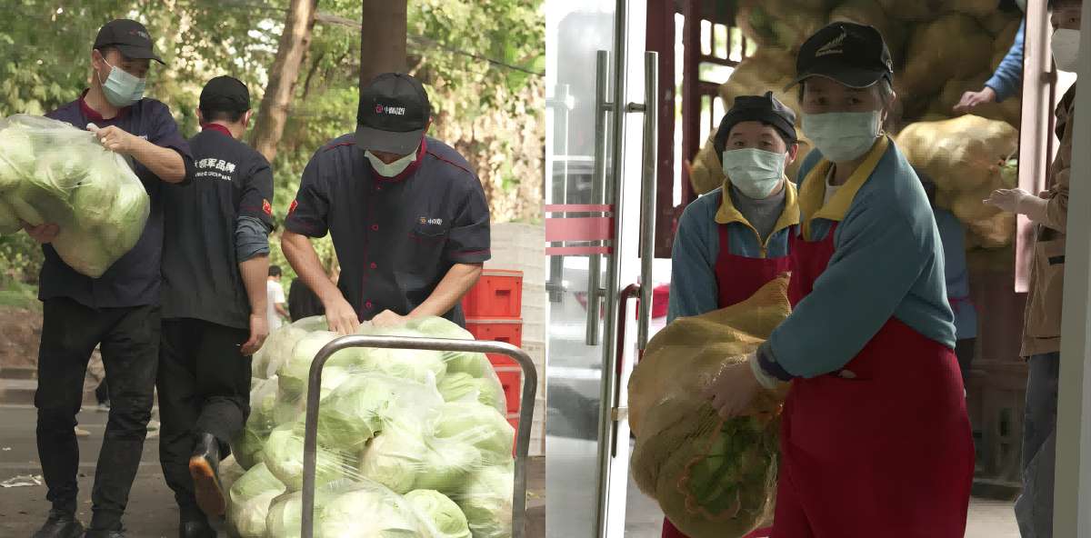 27日早上5点,当地村民早早就去到地里收割包菜和白菜装车。桥头坝农业合作社总经理向学明说:“村民们都很积极,想着能出点力,让大学里的老师和学生们吃上自己种的新鲜蔬菜,早日战胜疫情。” 红鑫农业合作社总经理李晓红表示,只要学校需要,他们还会继续输送支援蔬菜。
