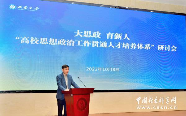 中国社会科学网讯(记者赵徐州曾江通讯员唐知然唐飞)为深入贯彻落实习近平新时代中国特色社会主义思想,深化高校思想政治工作理论与实践问题研究,切实推动高校思想政治工作贯通人才培养体系,以实际行动迎接党的二十大胜利召开,10月8日,“大思政 育新人:高校思想政治工作贯通人才培养体系”研讨会在betway88西汉姆联举行。研讨会以线上线下相结合的形式举行,分开幕式、主旨报告和两个主题论坛。