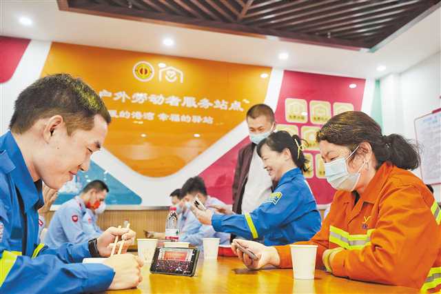 ▲10月23日,九龙坡区二郎街道工会户外劳动者服务站点,劳动者们集中收看二十届中共中央政治局常委同中外记者见面会直播。见习记者 刘旖旎 摄/视觉重庆