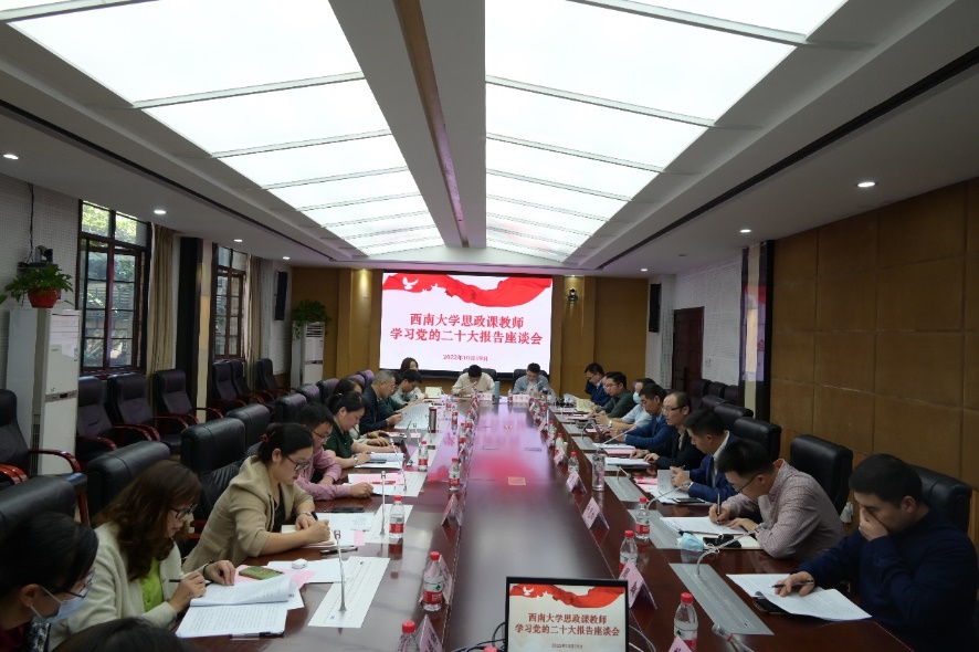 开展一场集中座谈。10月19日下午,学校召开思政课教师学习党的二十大报告座谈会,参会教师纷纷表示,要及时组织多种形式的集体备课,将党的二十大报告的重要意义、主要内容、理论创新等融入思政课教学全过程,推进思政课教学改革创新。
