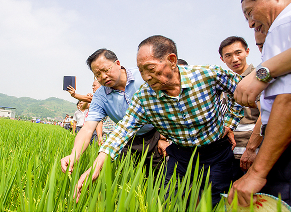 2015年8月,袁隆平在重庆南川超级杂交稻实验基地考察