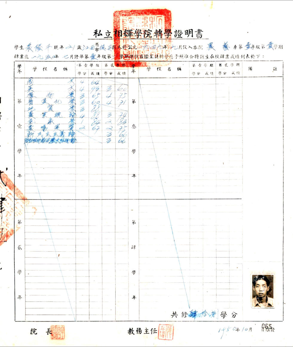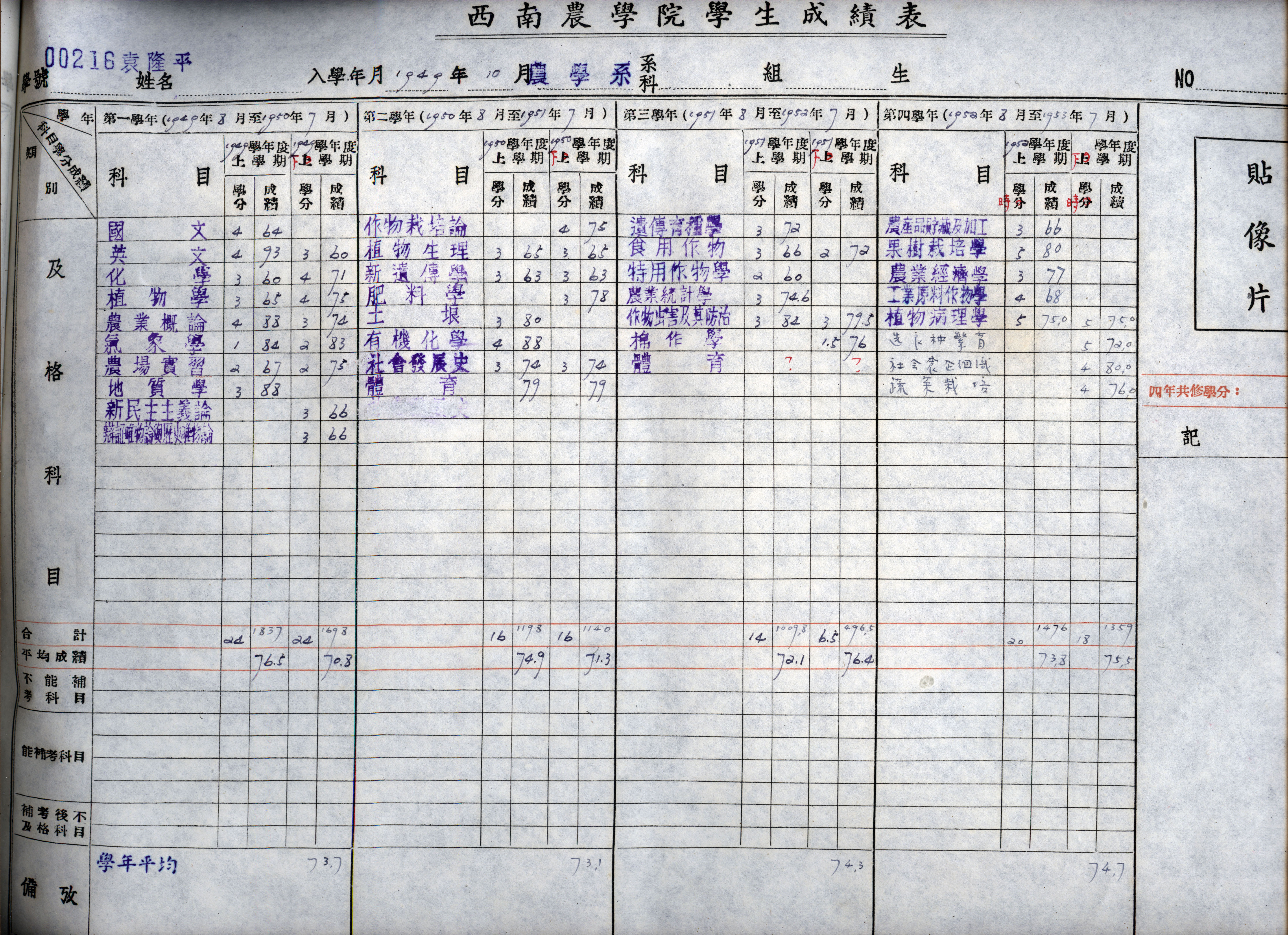 袁隆平于1949年9月考入重庆北碚的私立相辉学院农艺系,而1950年10月,西南农学院已经成立,由私立相辉学院和四川省立教育学院的农科三系合并组建而成。但私立相辉学院直到1952年才正式下文撤销。所以,袁隆平等学生学籍变更为西南农学院时,就开具了这一转学证明。