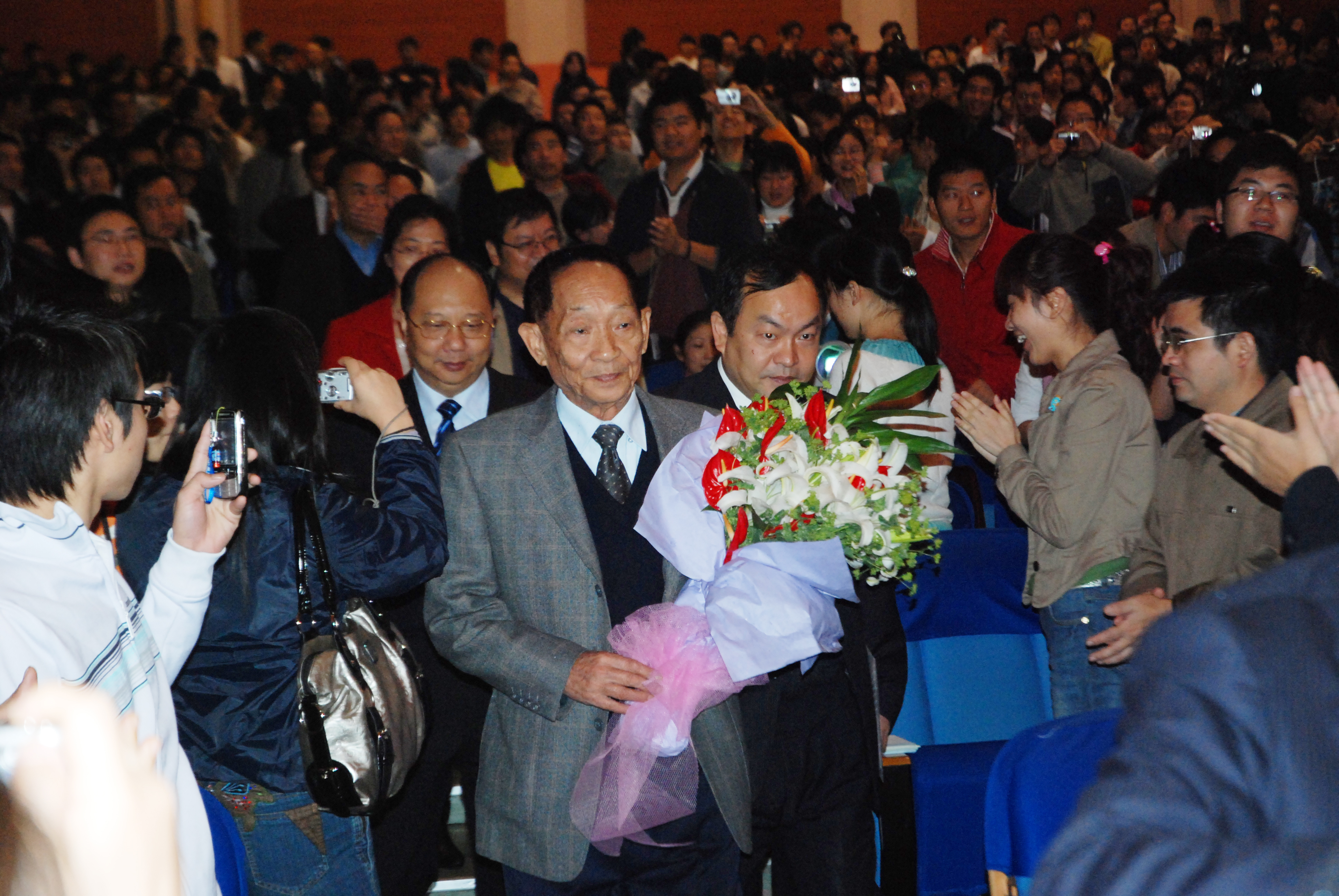 2008年袁隆平回母校,在大礼堂作学术报告,师生们把礼堂围得水泄不通。