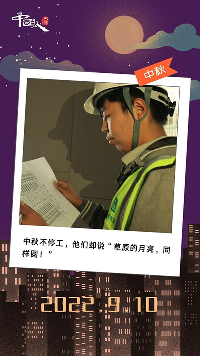 中秋,他们为了保障项目施工进度,选择就地过节。“和同事一起过节,在草原上看月亮数星星,这种人生体验千金难换啊!”今年刚参加工作的祝文博安慰着电话另一头的父母。