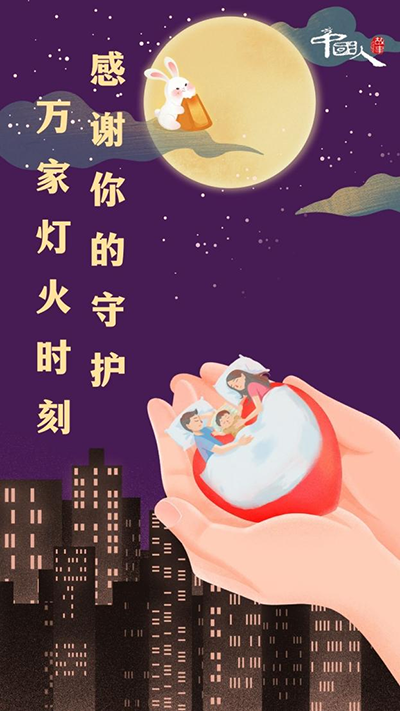 虽然我们在不同的地方,但遥望星空,月亮会传递我们的敬意和关爱。万家灯火时刻,感谢这份守护!