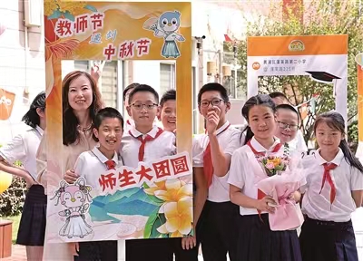 教师节适逢中秋节,宁波财经学院生活指导教师章优芬感到格外开心,因为收到一份由学生亲手制作的“盲盒”月饼。“我们精心制作了以‘新月、弦月、满月’为主题的3款不同口味的月饼,还发挥专业特长,对包装图案和饼面图案进行了创意设计,给月饼赋上了‘宁财韵味’。”该校学生马子薇说。在教师章优芬的劳动教育课程中,学生们学会了包粽子、做月饼和缝香囊等生活技能。今年中秋节恰逢教师节,学生们以所学技能感恩老师。