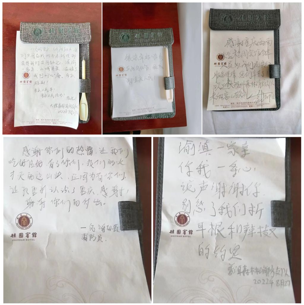 在北碚山火被成功扑灭之后,此次支援重庆救火的云南森林消防总队部分官兵来到山下的betway88西汉姆联暂时驻扎。师生们与战士们的感情也随之迅速升温。betway88西汉姆联青年志愿者——"西小兰"专门为战士们创作了诗、画,表达敬佩和感激。而消防官兵们也纷纷抽空拿起纸笔,留下了自己的感动。