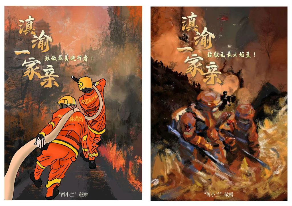 ("西小兰"为此次参与重庆救火的云南森林消防战士们作的画)