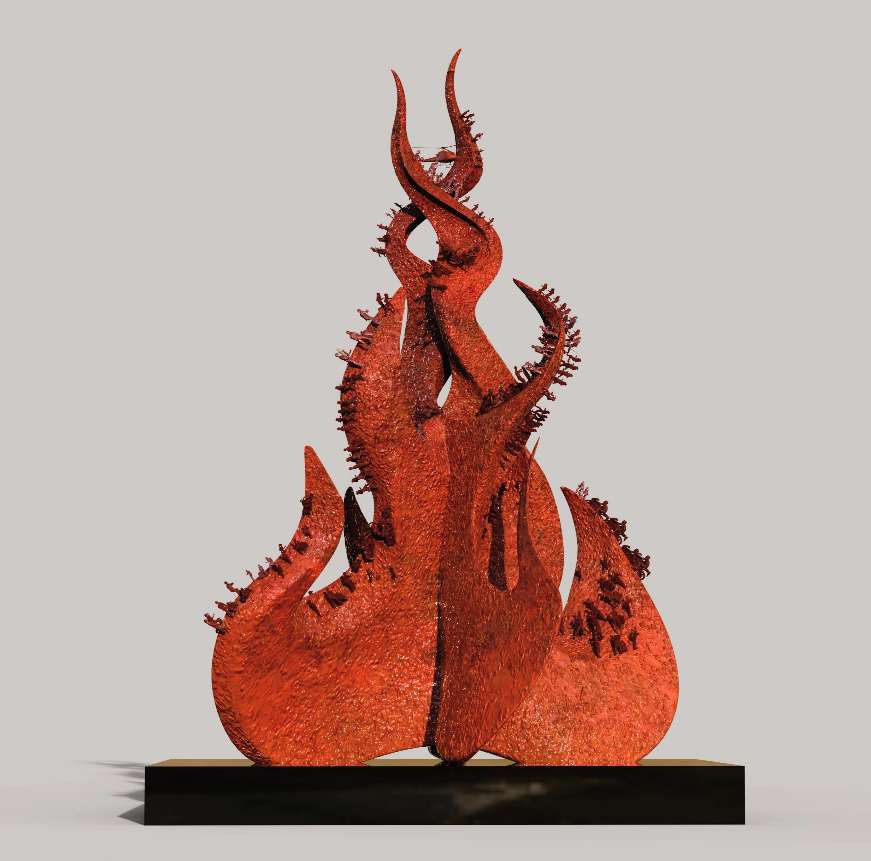 雕塑《浴火凤凰——中国北碚2022》用抽象的艺术形式,描绘中国人民的团结互助精神。