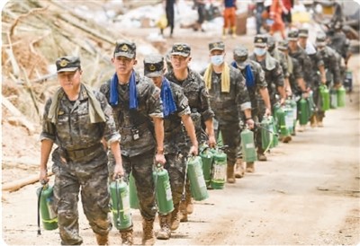 8月20日,大足区万古镇突发森林火灾。武警重庆总队机动支队数百名官兵迅速出动赶赴一线。根据现场指挥部安排,武警官兵采取“打点围控、逐个扑灭”的方式灭火。