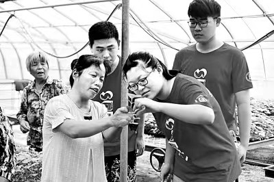 2021年7月17日,在山东省聊城市茌平区贾寨镇耿店村育苗厂,来自上海对外经贸大学、聊城大学的大学生们在蔬菜大棚劳动。赵玉国摄/光明图片