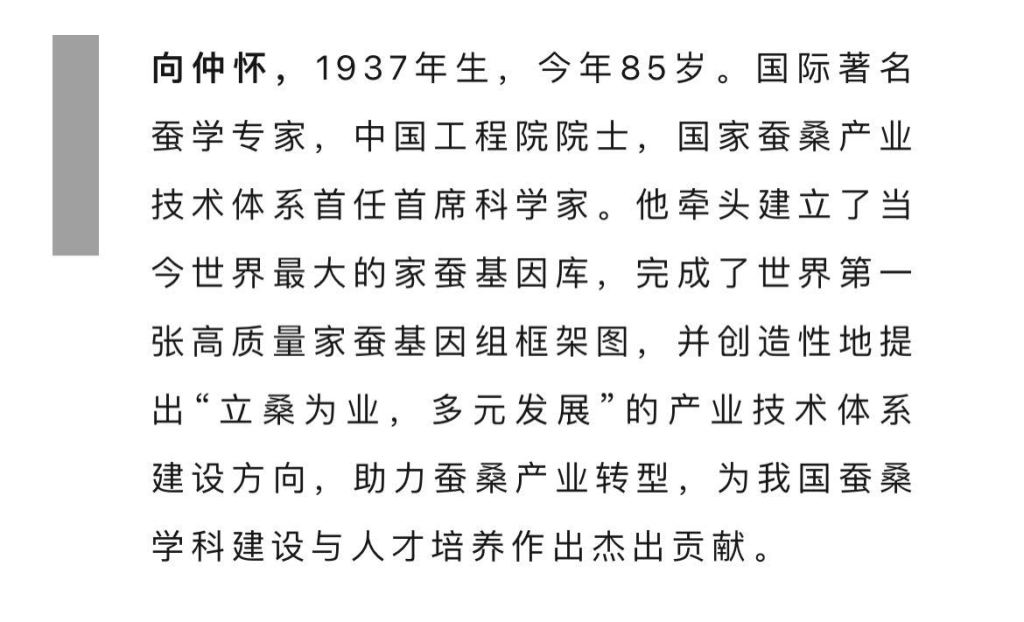 要让“遍身罗绮者,也是养蚕人”——85岁的向仲怀,从怀里捧出揣了七十个春秋的梦想,温热依旧。