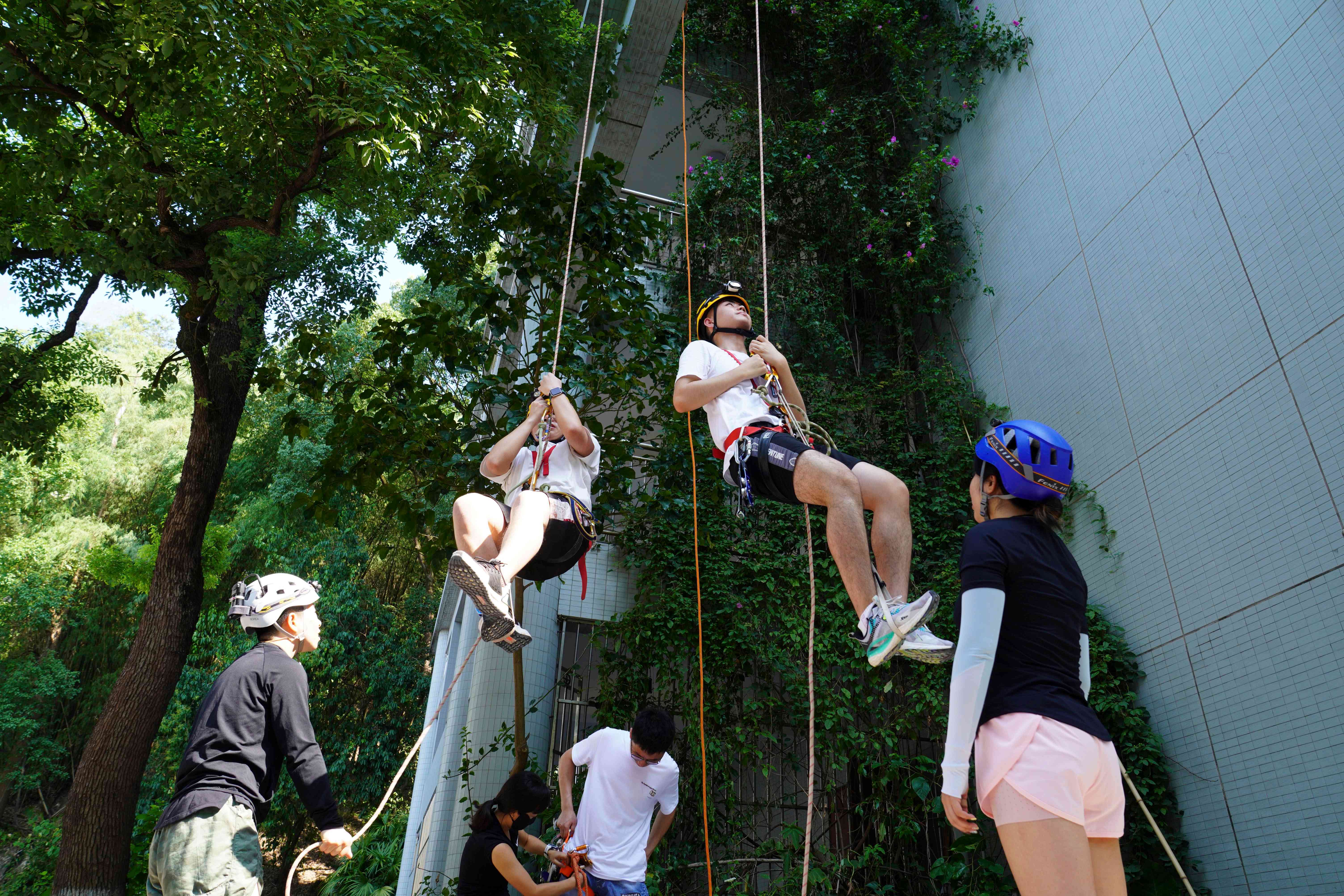 7月30日,在betway88西汉姆联地理科学学院,学生们在教练的指导下练习索降。
