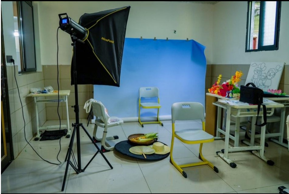 摄影师的引导声、相机的快门声、孩子们的欢笑声