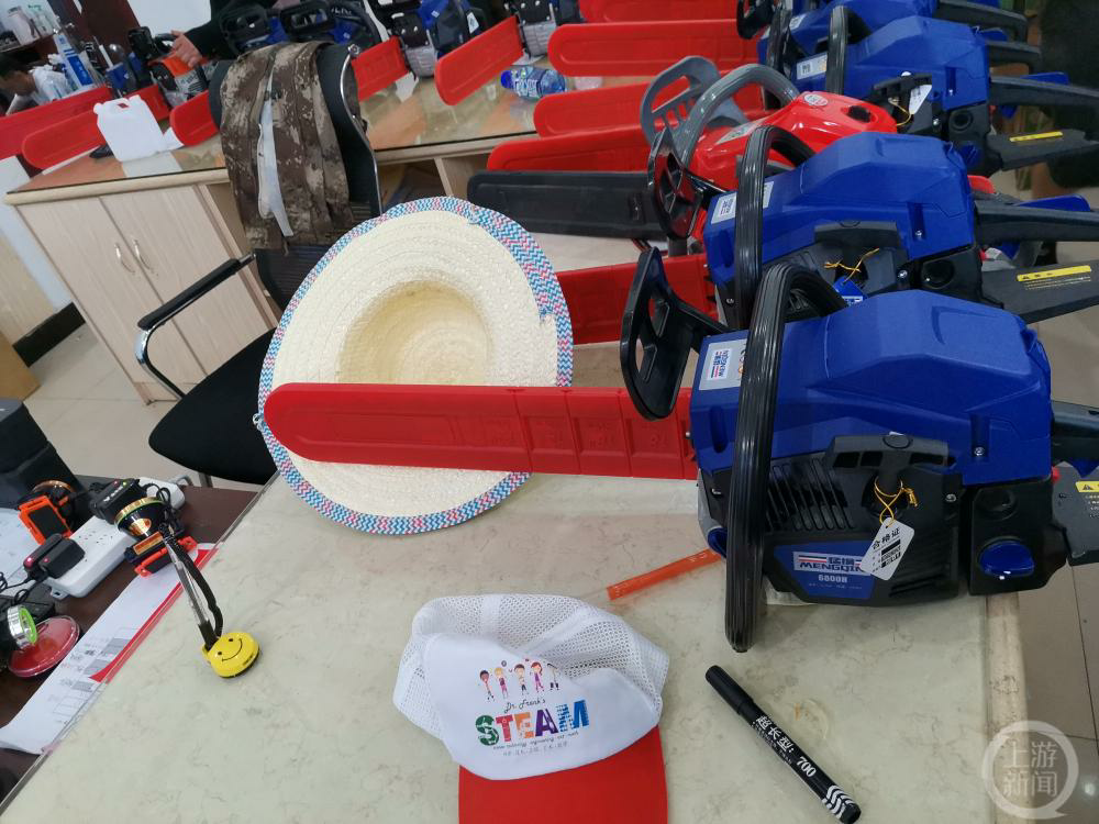 “老福”平时在学校主要负责STEAM(科学、科技、艺术、数学)教学,很擅长机械工具的安装和调试,所以他一到歇马镇就被分配了安装油锯的工作。据他回忆:“刚开始我是在户外安装,装了5个油锯以后,因为气温逐渐升高,当地政府就让我们转到了室内工作。我们几个安装人员花了2个小时,安装、调试了约50台油锯。”