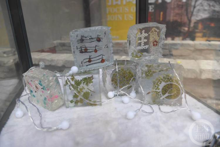 在山城巷“天上的街市”里,由园艺园林学院教师代璐设计的“山城巷,种子说”创意滴胶作品,引来众人驻足观看。作品采集了200多种种子,被凝聚成晶莹剔透的“琥珀”,在米糠和谷栗制作的“沙漠”上,孕育着无限的生机。