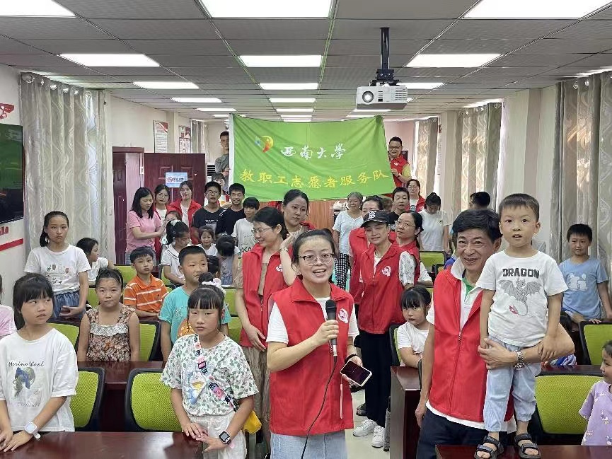 接着,在“宣讲安全教育知识,助力儿童平安成长”活动中,志愿者们以播放科普视频和生动讲解相结合的形式,为小朋友们普及防溺水、防拐骗、饮食安全、交通安全、消防安全等知识,进一步增强小朋友们的自我保护意识和安全意识。活动最后,教职工志愿者们根据三个活动中的比赛积分,为小朋友们颁发了奖品,现场气氛达到高潮。