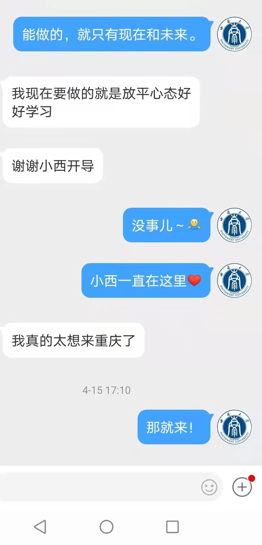 “我们都很认真地看大家给官微的私信,都很珍惜大家跟我们的每一条互动。”杨若希说,不少学生现在的困惑,其实都是学长学姐们曾经经历过的事,曾经觉得是天大的、过不了的事情,现在回过头来想想,其实也没什么,所以,也希望通过这种方式安慰到每一位朋友。