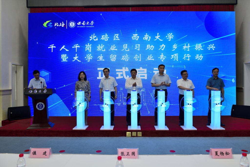 据悉,今天启动的“千人千岗”专项行动按照《实施方案》,已经首批落实32个就业见习项目和1232个分散见习岗位,将有14位专业教师和1300余名西大学子奔赴北碚乡村振兴建设一线,进行产业项目研发,开展就业见习实践。在今年的1000余岗位中,企业岗位575个,党政机关事业单位岗位265个,中小学校岗位392个,乡村振兴等示范项目32个。目前已有700余人完成人岗对接并陆续到岗开展就业见习。