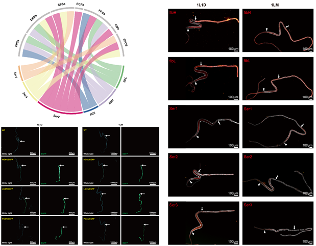 ▲家蚕丝蛋白基因在各细胞类型中的时空分布与表达