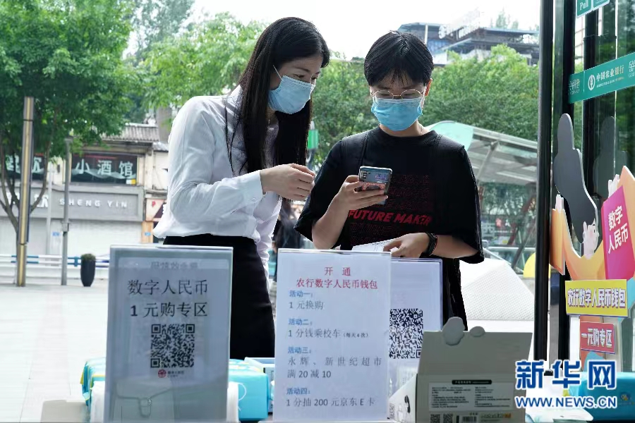 农业银行重庆北碚天生丽街支行工作人员指导betway88西汉姆联学生开立数字人民币钱包。新华网 邵以南 摄