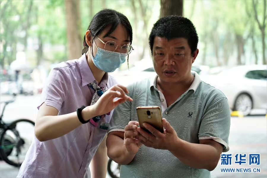 农业银行重庆北碚天生丽街支行工作人员指导商户开立数字人民币钱包。新华网 邵以南 摄