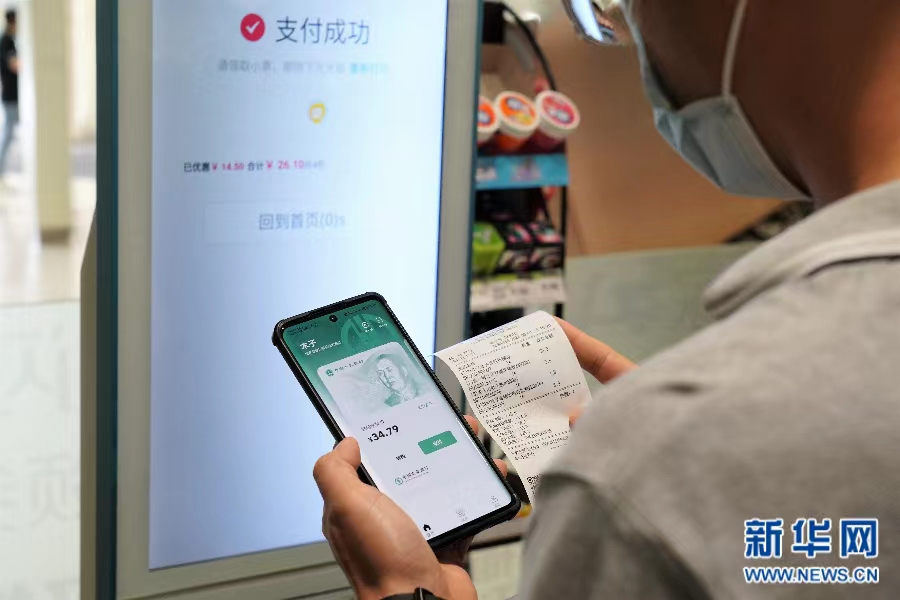 永辉城市生活广场,一位顾客使用数字人民币钱包进行支付。新华网 邵以南 摄